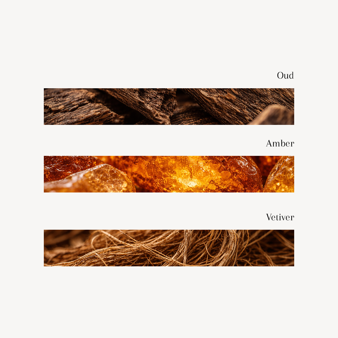 Nocturne unfolds with a fresh spark of bergamot and pink pepper, softened by aromatic davana. At its heart, smoky agarwood and white amber bring depth and warmth, balancing darkness with refinement. The scent settles into a smooth base of Haitian vetiver and musk, leaving a grounded, elegant trail that feels quietly powerful and enduring.