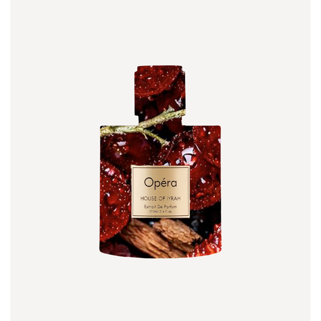 Opera opens with black currant and peach, creating a rich, expressive introduction. A layered floral heart of iris and rose unfolds with elegance and intensity. The fragrance settles into a warm base of cedar, pepper, and violet leaf, grounded by soft musk, leaving a magnetic, refined trail that commands presence without excess.