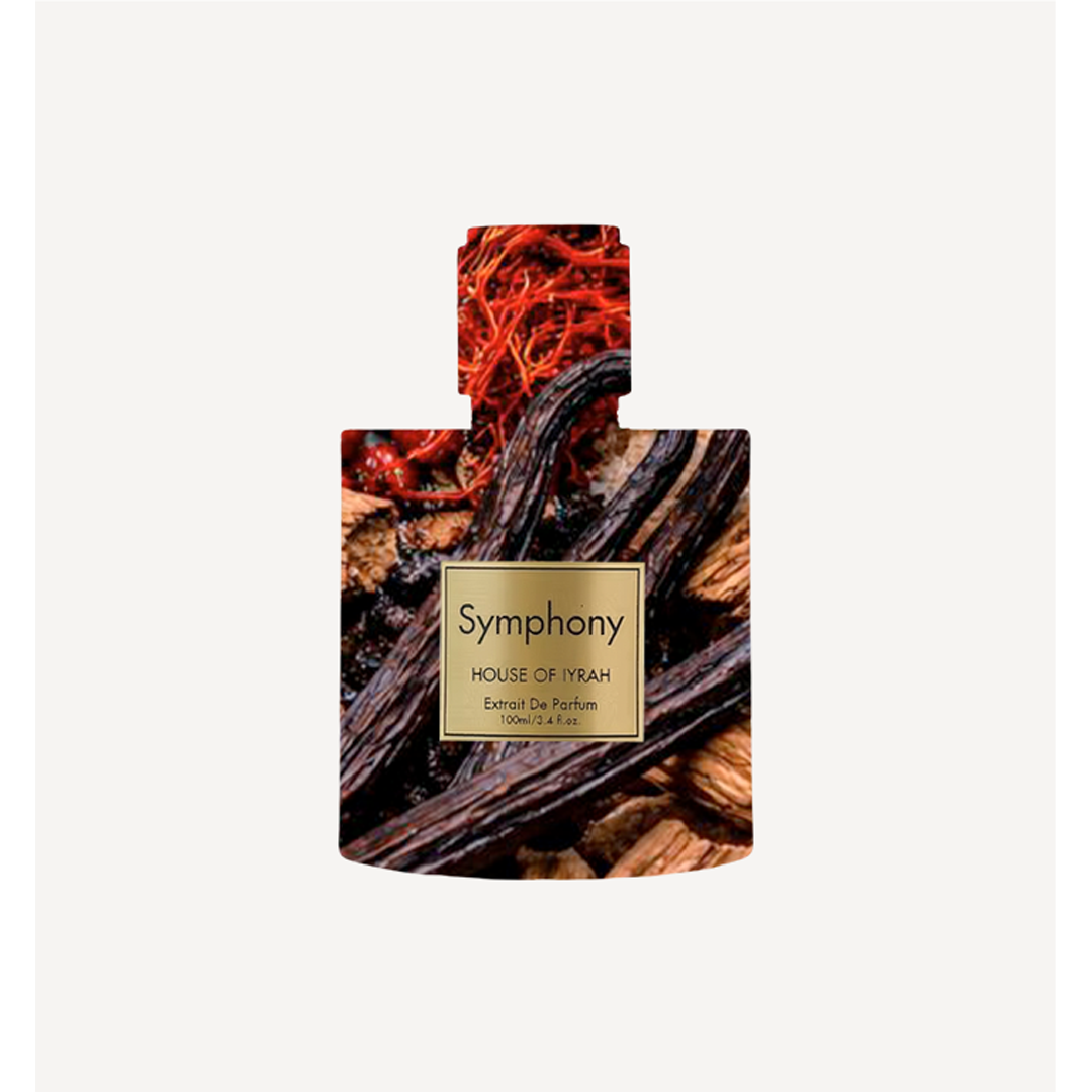 Symphony opens with bright apple, bergamot, black currant, and candied fruits, creating a joyful, indulgent introduction. Jasmine and saffron add a soft floral warmth with subtle spice at the heart. A rich base of sandalwood, vanilla, patchouli, and white musk brings depth and comfort, leaving a refined, enveloping trail that feels lush and elegant.